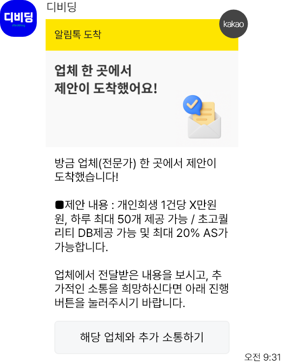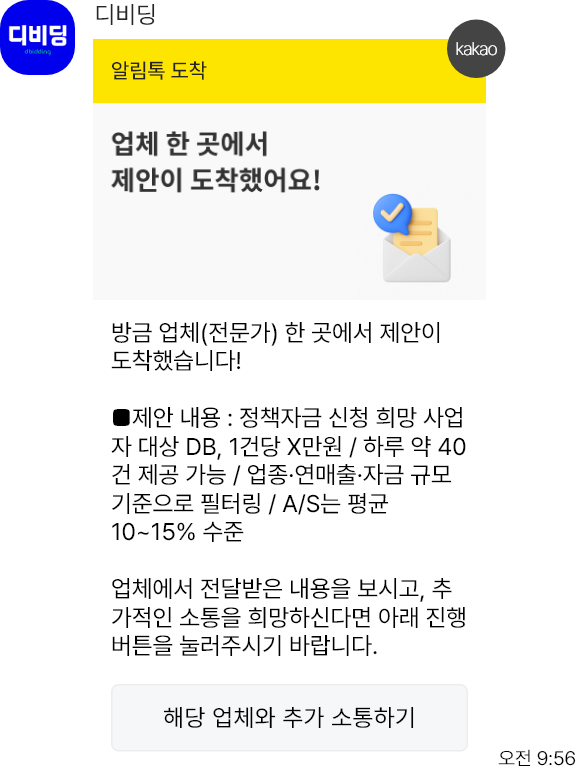 | 제공하는 개인정보 | 이름, 사업자명, 사업자등록번호, 업종, 개업연월일, 지역, 주소, 연매출, 기존대출, 필요자금 정보 |